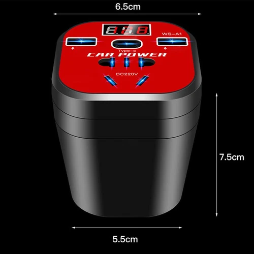 Easily convert your car’s 12V or 24V DC power into 220V AC power. Equipped with 2 AC sockets and 3 USB ports for charging multiple devices at once. High conversion efficiency of over 85%! Supports a wide power range from 60W to 150W.