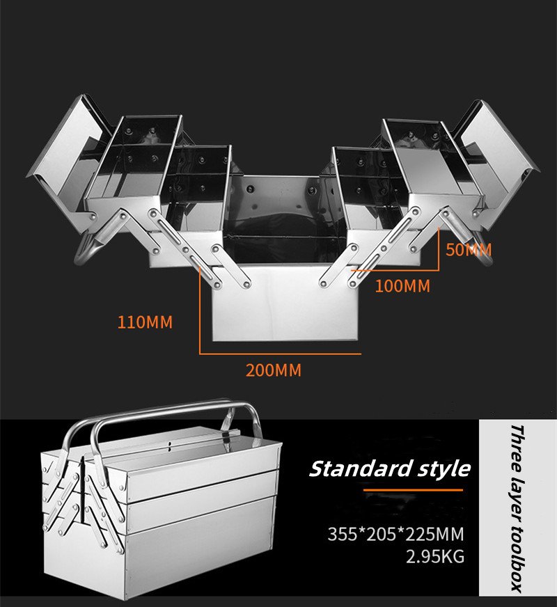 Foldable stainless steel toolbox