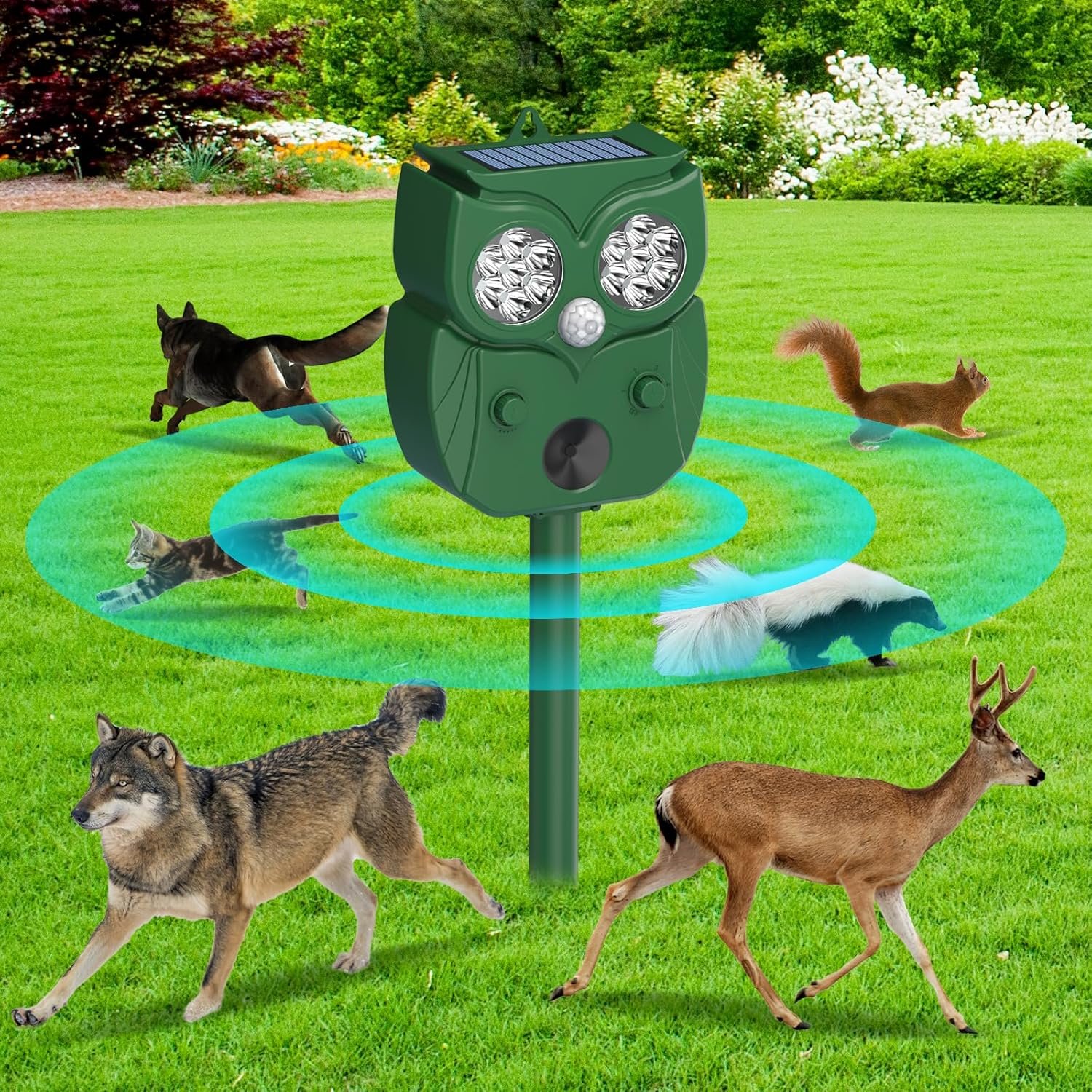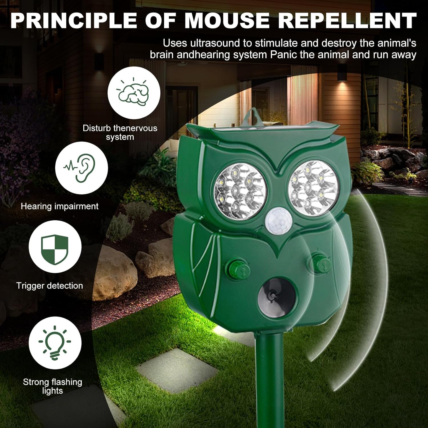 1) This is an infrared sensor that constantly outputs signals. When it senses a moving animal within the detection range, it automatically emits ultrasonic waves to repel the animal. |